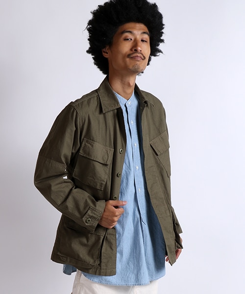 ファティーグジャケットベトナム型後期をベースにF'S流に新構築ジャングルファティーグには年代によって仕様の変更でポケットの角度やディティールが違います、一般的にベトナム後期型と言われるものをベースに作製。エルボーパッチがついているところがフリークスオリジナルのディティールになります。このさりげなさが最大のポイントです。生地も雰囲気を出すために古着に近いコットンリップを厳選しています。