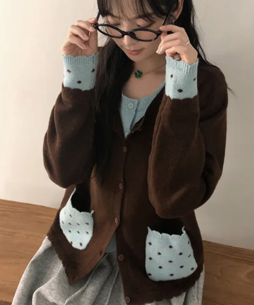 \一枚でお洒落上級者!レイヤード風デザインが可愛いカーディガン/レイヤード風ドットポケットカーディガン▽デザイン▽まるでインナーを重ね着しているかのような、ユニークなフェイクレイヤードデザインニット。フロントはカーディガンを2枚重ねたような仕様で、深みのあるスタイルを演出します。袖口と、スカラップの縁取りがキュートなポケットには、レトロなドット柄を採用し、ガーリーなアクセントをプラス。フロントのボタンをすべて閉じれば、1枚のニットトップスとしても着用可能です。▽素材・着心地▽柔らかいニット素材で、肌触り良く心地よい着用感です。▽スタイリング▽そのまま1枚で着るのはもちろん、前を開けて羽織りとしても活躍します。ミニスカートやフレアスカートと合わせてとことんガーリーに、デニムやスラックスと合わせてカジュアルダウンした着こなしもおすすめです。ボトムスをシンプルにまとめれば、カーディガンのデザインが引き立ちます。▽生地・素材感▽……………………………………●生地: 普通●透け感: ない●伸縮性: あり●裏地: ない……………………………………▼ブランド紹介▼「VIVIDLADY(ヴィヴィットレディー)」自分らしい“ベーシックアイテム”と新しい自分の”トレンドアイテム”が見つかる オフィスからカジュアルスタイルまで毎日着たいデイリーアイテムが揃うファッションを楽しむ女性のためのセレクトショップです。 ■お気に入り登録★《お気に入り登録》でお得な情報がいっぱい★・「商品のお気に入り登録」で再入荷通知や、ラストの通知、セール通知も受け取ることができます。・「ブランドのお気に入り登録」で新商品や再入荷など、お得な情報を受け取ることができます! ※商品画像は撮影時の光や角度により、実物の色味と異なって見える場合がございます。※撮影はサンプル品を使用しており、表示のサイズ感も実物とは若干異なる場合もございますので、予めご了承ください。※生産時期により色・素材・サイズ感など多少異なる場合がございます。予めご了承ください。※他のキャンペーンにより、期間中に価格が変動する場合があります。※セールは予告なく終了させていただく場合もあります。※商品以外はモデル私物になります。※他のキャンペーンにより、期間中に価格が変動する場合があります。※セールは予告なく終了させていただく場合もあります。※商品以外はモデル私物になります。