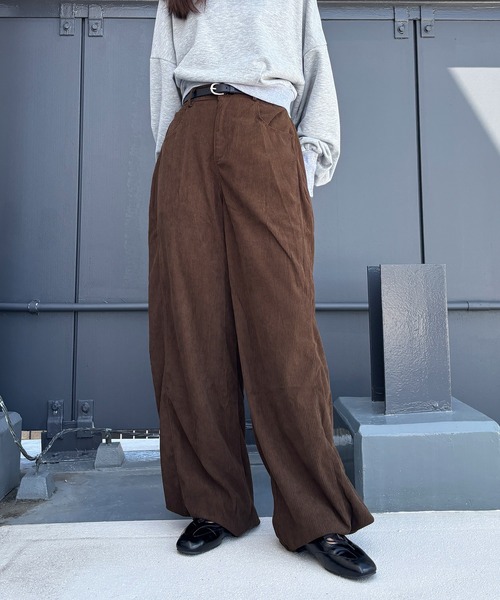 【ISOOK / アイスー】2wayコーデュロイパンツ / ワイド コクーン バレルレッグ ハイウエスト ウエストゴム アイボリー ブラック ブラウン 白 黒 茶 無地 ZOZOTOWN限定