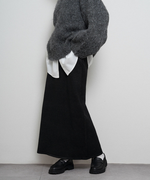 すっきりとしたシルエットで、大人の抜け感を演出するニットロングスカート。シンプルながらも縦のラインをきれいに見せてくれるIラインシルエットで、ほどよい厚みとストレッチ性があり、動きやすさも抜群。チクチク感の少ない滑らかな質感で、秋冬のデイリー使いにぴったりな着心地です。後ろにはスリットを施し、足さばきの良さと抜け感をプラス。オーバーサイズのニットやスウェットと合わせれば、トレンド感のある大人カジュアルスタイルが完成します。■Point・Iラインシルエットで体のラインを拾いすぎず、スタイルアップ効果◎・ポリエステル混素材で型崩れしにくく、お手入れもしやすい。・後ろスリット入りで抜け感と動きやすさを両立。■Detailウエストは総ゴム仕様でストレスフリーな穿き心地。ブーツやローファーとの相性も抜群です。同素材のニットプルオーバーとのセットアップ風スタイルもおすすめ。【お買い物をお楽しみいただく為に】▼商品のお気に入り登録完売カラーの再入荷通知や、ラスト1点の通知、セールの通知も受け取ることができます。▼ブランドのお気に入り登録新商品や再入荷等、いち早くブランドのお得な情報を受け取ることができます。