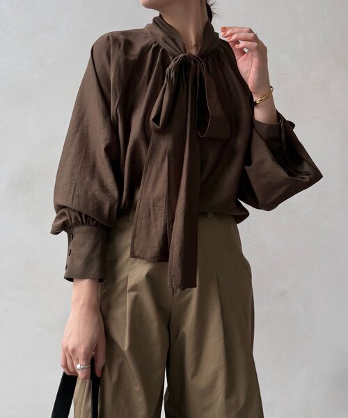 ■2025 AUTUMN & WINTER ITEM■大人の洗練されたスタイルが完成!上品なドレープ感と、控えめな光沢がきれいなブラウス。レーヨンを多く含む素材特性により、肌に馴染むような滑らかな着心地と、動くたびに優雅に揺れる落ち感を実現。フロントのネックラインと背中にはたっぷりとギャザーを施し、ふんわりとした立体的なシルエットを生み出しています。最大のポイントは首元に付属した長めのボウタイ。軽く一結びしてラフに垂らせば洗練された大人のムードに。アレンジ次第で様々な表情を楽しめます。前後2wayで着られるため、様々なシーンでの着回しが可能。パンツにもスカートにも合わせやすい丈感で、一枚着るだけで着こなしがクラスアップする、コーディネートの決め手となるアイテムです。- POINT -・シーズンムード漂う素材感・落ち着いたカラーリングのチェック柄が大人・、幅広い着こなしを楽しめる--------------------------------洗濯:水洗い不可能透け感: あり裏地: なし伸縮性: なし光沢感: なし--------------------------------【 ♡ をクリックでお得な情報をお知らせいたします 】〈 商品のお気に入り登録 〉 お気に入りアイテムのお値下げ・再入荷・在庫ラスト1点など通知を受けることができます。〈 ブランドのお気に入り登録 〉DOUDOUの新商品や再入荷、セール、クーポン配布などお得な情報を受けることができます。--------------------------------------※ 生産の都合上、お届け時期が前後する場合がございます。※ 掲載画像の商品の色味は、 撮影場所や光の当たり具合などにより色味が異なって見える場合がございます。 また、お客様のお使いのPC・スマートフォン等のモニター環境などにより色味が異なって見える場合がございます。予めご了承の上ご注文ください。 ※ 着用、お取り扱いの際は、商品についている品質表示とアテンションタグを必ずご確認下さい。