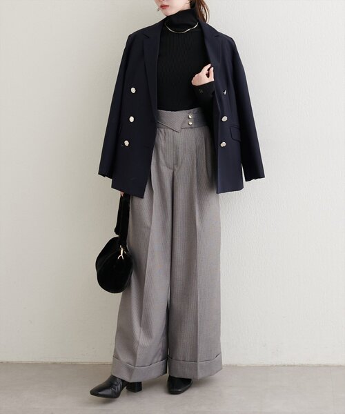 【2025AW natural couture】フロントターンバックタックパンツ■Design 目を引くフロントのターンバックデザインが、個性を際立たせます。深めのタックが入っていることで、美しいドレープが生まれ、動きのあるシルエットを実現。ウエスト周りはすっきりと見せつつ、裾に向かって広がるワイドシルエットが、リラックス感のある着心地を提供します。ウエスト部分にあしらわれたボタンが、さりげないアクセントとなり、トップスをインした際にもスタイリッシュに決まります。■Stylingシンプルなトップスと合わせるだけで、ワンランク上のスタイリングが完成します。オフィスシーンでは、シャツやブラウスと合わせて知的で落ち着いた雰囲気に。休日は、ニットやカットソーと合わせて、リラックス感のあるカジュアルスタイルを楽しむのもおすすめです。足元は、ヒールのあるパンプスやブーツを合わせれば、より女性らしい印象に。スニーカーやローファーを合わせれば、カジュアルでこなれた印象になります。■Fabric 滑らかな肌触り。程よいハリ感と落ち感があり、美しいシルエットをキープ。※サイズ表記の【ウエスト伸ばし値】は弊店スタッフが採寸したものです。お届けする実際の商品と表記寸法の間に多少の誤差が生じる場合がございます。何卒ご理解下さいますよう、お願い申し上げます。※サイズ補足ベルト部分の幅は5.3cm、その上の同じ素材の布部分は3cmでございます。===================お手入れ方法:手洗いポケット:あり伸縮性:なし裏地:なし透け感:なし光沢感:なし生地感 :滑らかな生地感===================※着用、お取り扱いの際は、商品に付いている品質表示とアテンションタグを必ずご確認ください。【お気に入り登録でお得な情報がいっぱい】・「商品のお気に入り登録」で再入荷通知や、ラスト1点の通知、セール通知をいち早く受け取ることができます。・「ブランドのお気に入り登録」で新商品や再入荷など、お得な情報を受け取ることができます!※店舗の入荷時期は商品によって異なります。店頭の在庫状況につきましては各店舗にてお問い合わせください。※撮影時の光の関係で、画面上の画像と実際のお色とでは若干の色差が生じる可能性がございます。また、ご覧いただいているモニター画面や、お使いのブラウザによっても、お色の違いがございますことをあらかじめご了承くださいませ。202510242025AW_natu25AW