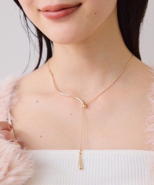 【2025 Autumn/Winter】【25AW】 <POINT> ・ニュアンスメタルラインで洗練されたY字シルエットに。 ・華奢なスネークチェーンと掛け合わせることで女性らしくもスタイリッシュな仕上がり。 ・スライダー仕様で長さ調節がとっても簡単◎ 【カラー】 ゴールドとシルバーの2色展開です。 【おすすめのスタイリング】 お仕事シーンにはもちろん、セレモニーシーンにもお使いただけます◎ ※画像の商品はサンプルです。 実際の商品と仕様、加工、サイズが若干異なる場合がございます。