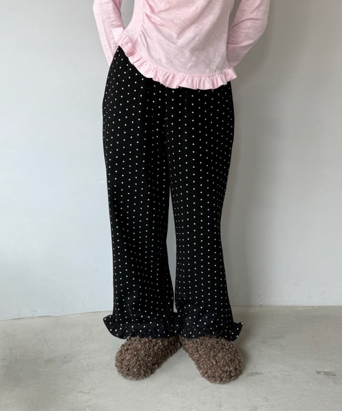 全体に細やかなドット柄を散りばめたワイドパンツは、ストレートに落ちる美しいラインと裾のフリルデザインがポイント。存在感のある柄ながらもシルエットがすっきりしているため、バランスの良い着こなしが叶います。ゆったりとしたリラックス感のあるフォルムはデイリーに取り入れやすく、シンプルなTシャツからフェミニンなブラウスまで幅広いトップスと好相性。足元にかけてゆるやかに広がるシルエットは抜け感を演出し、バレエシューズやスニーカーなど合わせる靴によって雰囲気を変えられるのも魅力。カジュアルにまとめても華やかさをプラスでき、シーズンレスで活躍する万能な一本。コーディネートのアクセントとしてワードローブに加えておきたいアイテムです。詳細補足仕様:裾フリル伸縮性:なし透け感:なし光沢:なし裏地:なし厚さ:普通サイズ感:ややゆったり【SANSëLF】▼お気に入り登録をおすすめします▼♡をクリック!お得なセール情報や、人気完売商品の再入荷情報ラスト1点の通知など、耳寄りなお買い得情報をいち早く受ける事ができます。ブランド【SANSëLF】のお気に入り登録もご一緒にお願い致します。取扱注意事項※サイズは、測定方法と測定者によって多少の誤差がありますのでご了承下さいませ。また体型によって、サイズ感に個人差がございます。(平置き採寸)※商品によってはシワがつきやすく、畳みジワや折りジワなどが強く出る場合がございます。その際は加湿した風呂場に数時間干すか、スチームアイロンでのお手入れをお勧めしております。※生地の素材上、においが気になる場合がございます。その際は陰干しして頂くと、ほとんど感じにくくなります。※レース等の繊細な素材を使用している場合には、お取り扱いにご注意下さい。※デニムを使用した製品は、インディゴ染めをしています。汗や摩擦により移染しやすいので、白色、淡色の組み合わせや重ね着はお避け下さい。※ニット素材を使用した製品は、重みで伸びやすくなりますのでハンガーでの保管はお控えください。※お洗濯の際には、品質表示の指示に従ってください。必要であれば専門店にご相談ください。家庭でご洗濯できる商品に関しては、洗濯専用ネットをご使用の上、個別での洗濯をお勧めいたします。お色物は、色移りする可能性がございます。※着用画像は撮影状況や光によって、多少異なる場合がございますので、置き画像をご確認下さい。※2023年7月1日より、環境に配慮した取り組みの一環として、紙のアテンションタグを廃止しております。