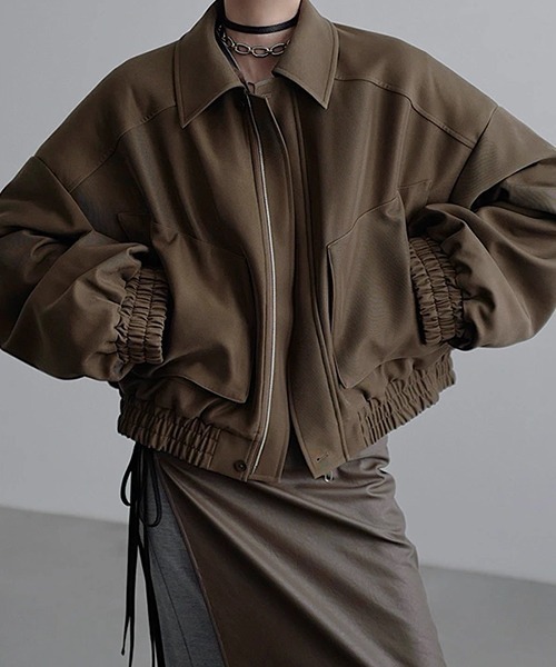 全体的なボリューム感とショート丈のバランスが今年らしいショートブルゾン。 ボリュームを持たせたスリーブと、裾のギャザーが生み出す丸みのあるシルエットが程よい女性らしさをプラス。 ジップ付きポケットや比翼仕立てなど、シンプルな中にも機能性とデザイン性を兼ね備え、さりげないアクセントをプラス。 ヒップ上にかかるショート丈はバランスが取りやすく、ワイドパンツやスカートとも好相性。 裏地はフェイクファー素材で温かく、ラフに羽織るだけでこなれ感のあるスタイリングが完成する優秀アウターです。 【CHENTAITAI】 ジェンダーレスで独創的なデザインをモードに昇華させ、特徴的な生地やディテールをリアルクローズに落とし込んだ、新進気鋭のデザイナーズブランド 詳細補足 仕様:フロントファスナー / フロントポケットあり(ファスナー付) 伸縮性:なし 透け感:なし 光沢:なし 裏地:あり(フェイクファー) 厚さ:普通~やや厚手 サイズ感:普通~ややゆったり instagram→chuclla_official 取扱注意事項 ※サイズは、測定方法と測定者によって多少の誤差がありますのでご了承下さいませ。 また体型によって、サイズ感に個人差がございます。(平置き採寸) ※商品によってはシワがつきやすく、畳みジワや折りジワなどが強く出る場合がございます。 その際は加湿した風呂場に数時間干すか、スチームアイロンでのお手入れをお勧めしております。 ※生地の素材上、においが気になる場合がございます。 その際は陰干しして頂くと、ほとんど感じにくくなります。 ※レース等の繊細な素材を使用している場合には、お取り扱いにご注意下さい。 ※デニムを使用した製品は、インディゴ染めをしています。 汗や摩擦により移染しやすいので、白色、淡色の組み合わせや重ね着はお避け下さい。 ※ニット素材を使用した製品は、重みで伸びやすくなりますのでハンガーでの保管はお控えください。 ※お洗濯の際には、品質表示の指示に従ってください。必要であれば専門店にご相談ください。 家庭でご洗濯できる商品に関しては、洗濯専用ネットをご使用の上、個別での洗濯をお勧めいたします。 お色物は、色移りする可能性がございます。 ※着用画像は撮影状況や光によって、多少異なる場合がございますので、置き画像をご確認下さい。 ※2023年7月1日より、環境に配慮した取り組みの一環として、紙のアテンションタグを廃止しております。