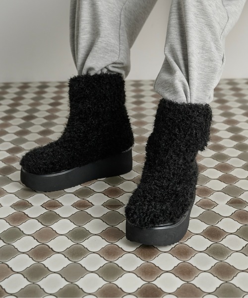 THE YOn 2025 AW Collection可愛いげのある重厚感【Design】ボリューム感のあるフォルムが目を惹くアイテム。温かみのあるボアの表情でシーズンライクなムードに。プラットフォームソールが安定感とスタイルアップ見えの両立を叶えます。裏地にエコファーを使用し、柔らかく暖かな履き心地に仕上げました。【Styling Point】スタイリングのポイントになる存在感のあるアイテム。トレンドの半端丈のボトムスの足元にもおすすめの一足。【お買い物をお楽しみいただく為に】▼お気に入り登録をオススメ致します。 『♡』をクリックして下さい。・《商品のお気に入り登録》で再入荷通知や、ラスト1点の通知、セールの際の通知も受け取ることができます。・《ブランドのお気に入り登録》で新作商品や再入荷など、お得な情報を受け取ることができます。【ATTENTION】 ※画像の商品はサンプルです。 実際の商品と色味、仕様、加工、サイズ、素材等が若干異なる場合がございます。※撮影場所やお使いのモニター環境により若干お色味が異なる場合がございます。※製品によっては染料の特性上、湿った状態や汗をかいた状態での長時間の放置、または摩擦により、他のものへ色移りする恐れがありますので、着用時にはご注意下さい。 ※風通しがよく、湿気の少ない日の当たらない場所で保管して下さい。 ※また製品加工上、お手元に届く際に匂いが生じる場合がありますが、 ご使用を続けていく事により匂いは軽減されます。
