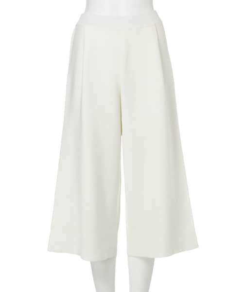 ニット素材のガウチョが新しい。ウエスト部分もゴムで履きやすくなっています。あえてトップスもゆるっとしたデザインのものを合わせると、トレンドのノームコアスタイルになり今年っぽくて◎。