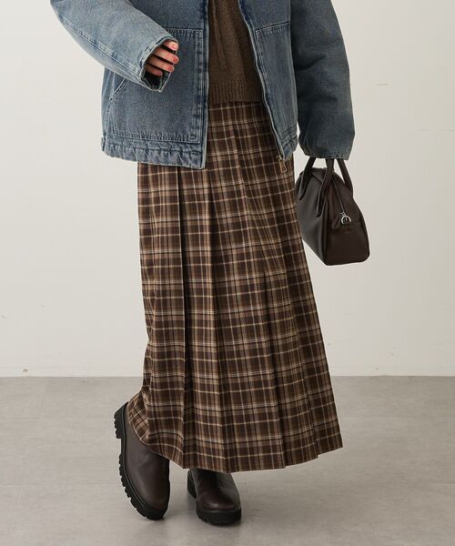 *チェック柄が映える、上品なフロントプリーツスカート。「動きのあるプリーツデザインが魅力」フロント部分だけにプリーツを施したデザインで、歩くたびに表情が生まれる一枚。バックスタイルはすっきりと仕立てているため、シルエットを美しく見せてくれます。腰まわりをスッキリ見せつつ、程よく広がるAラインが上品な印象を演出します。「落ち着きのある表情と軽やかな素材感」ほどよい厚みと落ち感のある生地を使用し、秋冬のスタイリングにぴったり。裏地付きで透け感も気にならず、快適な穿き心地です。ウエストはゴムなしの仕様で、きちんと感のあるすっきりとしたウエストラインに。「スタイリングを引き締めるクラシックチェック」落ち着いたトーンのチェック柄で、シーズンムードを高めてくれるデザイン。同系色のトップスを合わせて統一感を出したり、カジュアルなスウェット合わせで抜け感を出すのもおすすめ。シンプルな無地のブラウンカラーは、柄トップスとの相性も抜群です。透け感[なし]生地の厚さ[普通]光沢感[なし]伸縮性[なし]裏地[なし]ポケット[なし]※モデル着用画像は、光の当たり具合で色味が違って見える場合がございます。※お使いのモニター環境によって商品の色味が違って見える場合がございます。 ̄ ̄ ̄ ̄ ̄ ̄ ̄ ̄ ̄ ̄ ̄ ̄ ̄ ̄ ̄ ̄ ̄ ̄ ̄▼商品のお気に入り登録がおすすめです ▼商品ページ内のハートマークをクリック。完売時の再入荷や、最後の1点の通知、最後の1点など、お得なお値下げ情報を受けとる事ができます。【お知らせ】ページでも通知が確認できます。 ̄ ̄ ̄ ̄ ̄ ̄ ̄ ̄ ̄ ̄ ̄ ̄ ̄ ̄ ̄ ̄ ̄ ̄ ̄
