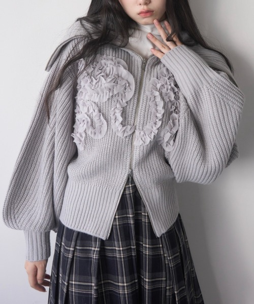 立体感のあるシフォンモチーフが印象的なジップニット。繊細なフリルが華やかさをプラスし、フェミニンなムードを引き立たせるデザイン。ジップの開き具合で、セーラーカラー/オフショル/ハイネック(ジップを閉めて折り返す)と3wayの着こなしが楽しめる万能デザイン。袖はボリュームを持たせたバルーンスリーブ仕様で、トレンド感を感じさせるバランス。また、肉厚のリブ編みでシーズンムードをしっかりキープしつつもウエストラインをすっきり見せてくれる短めの丈感でスタイルアップ効果も◎ディテールまでこだわった立体的なシフォンが高見えを叶える、存在感がありながらも上品にまとまる今季マストな3wayニット。 着用の商品写真は、サンプルでの撮影のため、色味や加工の見え方に若干の違いがある場合がございます。予めご了承ください。また、お使いの端末やモニターによってもお届けの商品と多少の差が生じる可能性がございます。