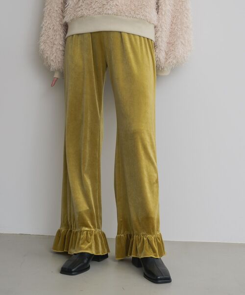<トレンドのデザインベロアパンツ> ▼デザイン ・ウエストは総ゴム仕様のイージーパンツ ・もも周りにもゆとりをもたせ、裾はややフレアなシルエットに。 ・フリルデザインの裾もポイント。 ・伸縮性のある生地感で着心地も◎ ▼コーディネート ・シャツやニットなど、丈長め、または オーバーサイズなトップス合わせがおすすめ。 ・ワンピースなどのレイヤードスタイルにも。 ------------------------------ 生地感:普通 伸縮性:ある 透け感:なし 裏地:なし ------------------------------ ▼ブランド紹介 kivi (キヴィ) シンプルだけど、時にエッジを効かせ、 「大人のかわいい」の実現へ。 自分を磨き、大切にできる ニューノーマルを生き抜く全ての女性へ。 #kivi #2025aw #ベロア #ベロアパンツ #フレアパンツ #イージーパンツ #トレンド #大人カジュアル #レイヤードスタイル ▼注意事項 ※撮影環境やモニター環境によって実際の商品とお色味が多少異なってみえる場合がございます。 品番: KW580032T001 / 品名:裾フレアベロアパンツ