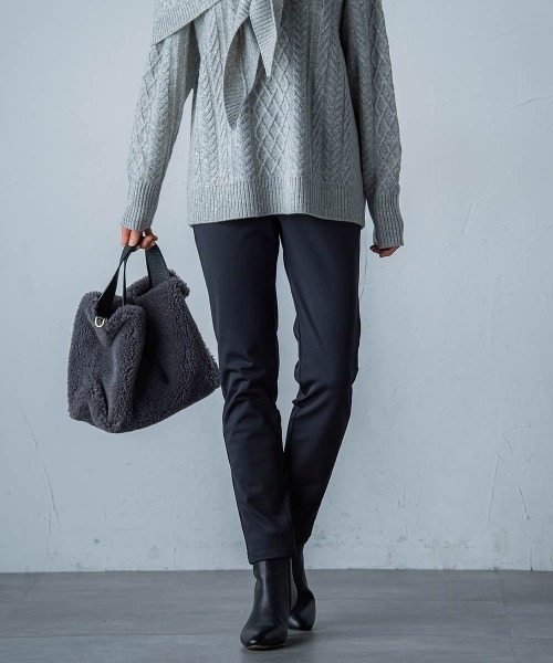 【デザイン】定番の売れ筋レギパンに、裏起毛の暖か素材が登場。シンプルなデザインでより使いやすく。若干ゆとりのできる程よいサイズ感にしているので1枚着でもしっかりパンツとして使える。1枚持っておくと様々なシーンで活躍すること間違いなしの裏起毛レギパン。今年の秋冬はこれで乗り切れそう!【素材】生地が伸縮を繰り返すことで発熱する【ストレッチ発熱機能】を備えたLEOTHERMOを使用したジャージ素材。ストレッチ発熱機能に加え裏起毛となっている為、寒い時期にぴったりの素材で、ポリウレタンを含む為ストレッチ性抜群です。【スタイリング】1枚でもOKですが、タイトなボトムが苦手な方はワンピースやチュニックアイテムのボトムとしてのスタイルがおすすめ。----------------------------------洗濯方法家庭洗濯:液温は40℃を限度とし、洗濯機で弱い洗濯ができる。自然乾燥:日蔭の吊り干しがよい。アイロン:底面温度110℃を限度としてアイロン仕上げができる。ドライクリーニング:石油系溶剤による弱いドライクリーニングができる。----------------------------------■モデル身長 165cm/着用サイズ M※商品タグに記載されたサイズはヌードサイズです。実際の商品のサイズは商品情報の実寸をご確認ください。※画像の商品はサンプルとなりますので実際の商品と仕様、加工、サイズが若干異なる場合がございます。※お客様のモニター環境により実際のお色と多少異なる場合がございます。※撮影状況や光の当たり具合により、色合いが異なって見える場合がございます。