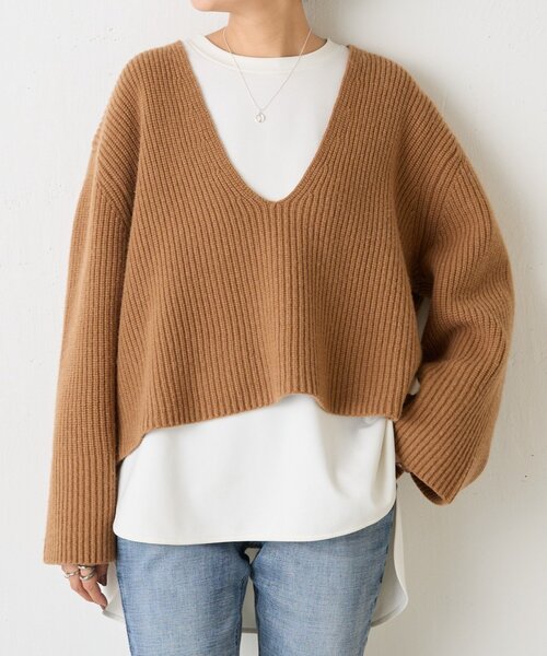 ■アイテム深めに開いたVネックが印象的なニットプルオーバー。一枚ではもちろん、レイヤードスタイルを楽しめるデザインで、ワンピースやブラウスとの合わせにもぴったりです。畦(あぜ)編みならではの程よい厚みと伸縮性があり、身体を包みこむような柔らかさ。ゆとりのある身幅とコンパクトな着丈が、全体のバランスを美しく整えます。袖口はリブを付けずにストレートに仕立て、後ろの衿元にはほんのりラウンドさせ、着るだけで大人の抜け感を演出してくれる一枚です。■素材・洗濯表示素材:毛100%洗濯表示:手洗い可※着用時・洗濯時は、必ず取扱い表示・タグをご確認の上、お取り扱い下さい。----------------------------------伸縮性:あり光沢:なし厚み:ややあつい透け感:なし裏地:なしポケット:なしファスナー:なし----------------------------------《お取り扱い上のご注意》・タンブル乾燥不可・クリーニングネットを使用・アイロンは当て布をしてかけてください。・長時間水に漬けておいたり、濡れたまま放置せず、洗濯後はすばやく干してください。洗濯の際多少縮むことがあります。・単品洗い・中性洗剤使用・引っ掛かりやすくなっていますので、着用や着脱、保管の際、他の衣類への引っ掛けには充分ご注意ください。<ピリング(毛玉)>ピリングとは、着用中に繊維の表面がこすれたり揉まれたりして毛羽が絡み合い、次第に大きくなって出来る毛玉のこと。 素材の特性上、避けられない現象で、完全に防止することは出来ません。 着用やお手入れ、お取り扱いにご注意ください。 一日着用したら二日休ませる、など、ローテーションを考えて着用してください。 ピリングが出来たら、引っ張ったりして取ろうとせず、ブラッシングするか毛玉取り器や小さなハサミなどで、ひとつひとつ取り除いてください。《予約商品について》・サンプルの為、素材情報、洗濯表示については企画段階の情報を記載しております。公的機関での試験データ結果を受け、量産にあたり混率や洗濯方法の変更が発生する場合がございますので、ご了承くださいませ。・サンプルでの撮影、計測をしております。商品の仕様が一部変更になる場合がございます。・撮影サンプル品はブランドタグがついておりません。製品にはタグがつきますので、製品の表に縫い糸が見える場合がございます。・工場の生産の都合上、納期が変更になる場合がございます。検品や輸送の関係で、発送日が前後しますのでご了承ください。また、入荷状況により、お客様への発送が店頭販売より遅れる場合もございます。・店頭に陳列していた商品も含まれる場合がございます。《商品画像について》ご覧頂いている商品の写真につきましては、できるだけ実物の色に近くなるように努めておりますが お使いの環境(モニター、ブラウザ等)の違いにより、色の見え方が実物と若干異なる場合がございます。 予めご了承ください。《ハートをタップして商品のお気に入り登録》【ハートをタップ】登録カラーの商品の「残りわずか」「再入荷」「値下げ」通知を受け取ることができます。【各ショップアプリにてブランドフォロー】 新商品などの入荷情報、最新のニュースやお得な情報を受け取ることができます。