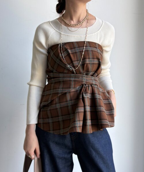 ■2025 AUTUMN & WINTER ITEM■ トレンド感あふれるレイヤードスタイルが完成! シーズンムード漂う起毛チェック柄が魅力のビスチェ。 起毛感のある素材が暖かみと柔らかなタッチを実現。また、落ち着いたカラーリングのチェック柄で、コーディネートにトラッドでシックなムードを添えます。 デザインはバストからウエストにかけてフィットするシャーリングと、ウエストからふわりと広がるペプラムシルエットが特徴。体型をカバーしながら、メリハリのある美しいラインを演出します。 薄手のニットの上から、またはジャケットなど羽織りアイテムのインナーとしてなど、幅広い着こなしを楽しんでいただけますよ。 - POINT - ・シーズンムード漂う素材感 ・落ち着いたカラーリングのチェック柄が大人 ・、幅広い着こなしを楽しめる -------------------------------- 洗濯: 透け感: なし 裏地: なし 伸縮性: なし 光沢感: なし -------------------------------- 【 ♡ をクリックでお得な情報をお知らせいたします 】 〈 商品のお気に入り登録 〉 お気に入りアイテムのお値下げ・再入荷・在庫ラスト1点など通知を受けることができます。 〈 ブランドのお気に入り登録 〉 DOUDOUの新商品や再入荷、セール、クーポン配布などお得な情報を受けることができます。 -------------------------------------- ※ 生産の都合上、お届け時期が前後する場合がございます。 ※ 掲載画像の商品の色味は、 撮影場所や光の当たり具合などにより色味が異なって見える場合がございます。 また、お客様のお使いのPC・スマートフォン等のモニター環境などにより色味が異なって見える場合がございます。予めご了承の上ご注文ください。 ※ 着用、お取り扱いの際は、商品についている品質表示とアテンションタグを必ずご確認下さい。