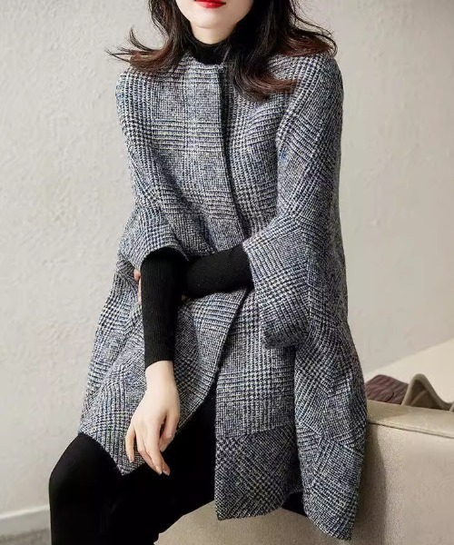 グレンチェックのケープ風ガウンコートは、クラシカルで上品な雰囲気がありつつ、羽織るだけで主役になるアイテムですね。 シルエットに存在感がある分、合わせるアイテムはシンプル&すっきりまとめるのがポイントです。 ⸻ ■エレガントスタイル •インナー: タートルネックニット(黒・モカ・アイボリーなどのベーシックカラー) •ボトム: セミフレアパンツやセンタープレス入りスラックス •シューズ: ポインテッドトゥブーツやヒールローファー •アクセント: レザーの細ベルトでウエストをマークすると、ケープの立体感が引き立ち、きれいなAラインに。 ⸻ ■モードスタイル •インナー: ブラックのハイネックトップス •ボトム: レザーパンツやワイドパンツで質感に変化を •シューズ: 厚底ブーツやショートブーツ •小物: シルバーアクセや黒のレザーバッグで統一感を出すと、グレンチェックの柄が映えます。 ⸻ ■カジュアルスタイル •インナー: 白TシャツやロンT •ボトム: デニム(スキニーでもワイドでもOK) •シューズ: スニーカーやサイドゴアブーツ •ポイント: ケープの重さを軽減するために、デニムや白系アイテムで抜け感をプラス。 ⸻ ■フェミニンスタイル •インナー: リブニット×プリーツスカート •シューズ: ショートブーツやパンプス •小物: パールアクセやミニバッグで女性らしさをプラス。 •ポイント: ケープのゆるやかなシルエットとスカートの揺れ感で、上品な動きが出ます。 【Information】 ◆《お気に入り登録》がオススメ◆ ・「商品のお気に入り登録」で再入荷通知や、ラストの通知、セール通知も受け取ることが出来ます。 ・「ブランドのお気に入り登録」で新商品や再入荷など、お得な情報を受け取ることが出来ます。 ※撮影時のライティング、ご覧になっているモニター・PC環境により、実際の商品と色味が異なって見える場合がございます。予めご了承をお願い致します。 大人ファッション 大人カジ お洒落 お仕事コーデ 低身長 20代コーデ 30代コーデ 40代コーデ 50代コーデ おすすめコーデ おちびコーデ 今日コーデ お洒落な人と繋がりたい オフィスコーデ お洒落さんと繋がりたい ママコーデ きれいめコーデ 春服 きれいめカジュアル 大人カジュアル ファッション通販 大人コーデ トレンド オトナカジュアル 新作 新着 再入荷 エレガント ベーシック カジュアル 可愛い おしゃれ オシャレ お洒落 個性 個性的 定番 ベーシック 大人かわいい 大人可愛い 上品 女性らしい デザイン スタンダード ナチュラル きれいめ キレイめ シンプル フェミニン レディース レディースファッション 大人 ママ ミセス 30代 40代 50代 60代 フリーサイズ フリー 小さめ 小さめサイズ小さい 小さいサイズ 低身長 痩せ ほっそり 小柄 細身 標準サイズ 大きめシルエット 大きい 大きめ ビッグシルエット ぽっちゃり F サイズ自由 秋 夏 冬服 春物 夏服 秋服 春物 ホワイト 白 白色 日常着 普段着 日常使い