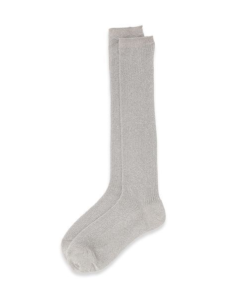 【ガーリーなアクセントを添えるラメリブソックス】 【Design/Styling】 足元にきらめきを添える、ラメリブソックス。ラメ感の強い糸で繊細に編み立てられたリブ編みは、ほのかな透け感があり、華やかさと軽やかさを兼ね備えたデザインです。存在感がありながらもコーディネートに馴染みやすく、パンプスやサンダルとのレイヤードにもおすすめの一足です。 ※照明の関係により、実際よりも色味が違って見える場合があります。 またパソコン・スマートフォンなどの環境により、若干製品と画像のカラーが異なる場合もございます。予めご了承ください。 商品の色味は、商品単品画像をご参照下さい。 ※商品画像はサンプルのため、色味やサイズ等の仕様に変更がある場合がございますので、予めご了承ください。