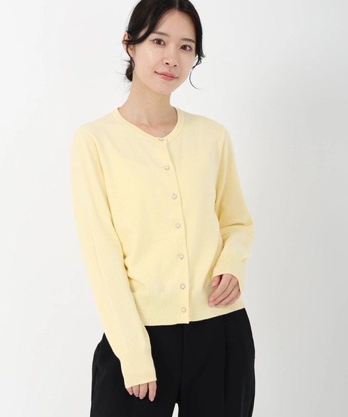 *ソフティカシミヤ繊細なパールボタンが上品なアクセントを添えるニットカーディガン。カシミヤ混の素材はふんわりとなめらかな肌触りが魅力で、優しく身体を包み込む着心地がポイント。シンプルながらも、フロントに並んだ小粒のパールボタンが、女性らしさと品の良さをさりげなく引き立てます。コンパクトすぎず、程よくゆとりのあるシルエットで、ワンピースやハイウエストボトムとも好相性。羽織りとしても、ボタンを留めてプルオーバー風にも着られる、着回し力の高い一枚です。 洗濯:洗濯機使用可能(ネット使用) 《お気に入り登録》はお得がいっぱい! 「商品」のお気に入り登録で、再入荷、ラスト1点、セールなどお得な通知を受け取ることができます。 「ブランド」のお気に入り登録で、新商品や再入荷などいち早くブランドの情報を受け取ることができます。 是非、この機会にご登録くださいませ。