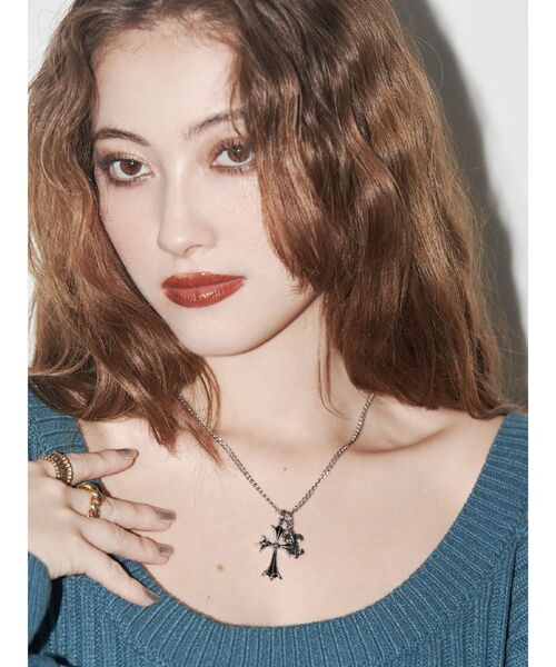 シンプルなワンレンチェーンにクロスモチーフが2つ付いたネックレスです。シンプルなデザインなので、合わせやすいアクセサリーです。