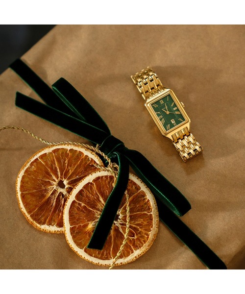 ゴールドトーンのステンレススチール製長方形ケースとマッチしたブレスレットが組み合わされ、洗練された統一感のあるデザインに仕上がっています。グリーンのサテンダイヤルは洗練されたポップカラーを添え、すっきりとした三針表示と便利な日付窓を備えています。ダブルプッシュ中折れクラスプを備えたこのウォッチは、考え抜かれたディテールと上質な素材が組み合わされ、洗練されたデイリーアクセサリーに仕上がっています。コレクション名:Raquelケースサイズ:23 MMラグ幅:12 MM防水: 5気圧ムーブメント:クォーツ/三針デイト表示:アナログ輸入: 正規品保証:2年間【 FOSSIL について 】FOSSIL(フォッシル)は、創造性と独創性にインスパイアされた世界有数のライフスタイルアクセサリーブランドです。時代を超えて愛されるレザーグッズ、ジュエリー、ウォッチを創造しています。すべての活動において、私たちはMake Time For Good(善き時を創る)ことに努め、人々や地域社会にポジティブな変化をもたらすよう取り組んでいます。<パッケージについて>・時計はFOSSILならではのデザインが魅力的なティン缶に入れてお届けします。・ティン缶のデザインは届いてからのお楽しみとなっております。・ティン缶の外装のデザインは画像と異なる場合がございます。< クオーツ製品の電池について >お買い上げ時に時計にセットされている電池は、動作確認用のモニター電池です。出荷前の保管期間中にも電池は消耗しており、ご購入時点で電池が切れている場合がございます。なお、電池切れは保証の対象外となりますので、あらかじめご了承ください。< ご確認ください >※パッケージは実際の画像と異なる場合がございます。※外箱には、輸送時にキズや凹みが生じる場合がございます。あらかじめご了承ください。※ご利用のモニター環境や照明の影響により、実際の商品と色味が異なって見える場合がございます。※納品書は保証書の代わりとなりますので、大切に保管していただきますようお願いいたします。※商品タグに記載している価格につきまして、旧価格のものが混在している場合がございます。それにより、商品に表示されている価格と異なるタグが付いている場合がございますが、正しい販売価格はご注文時に画面に表示された価格となります。ご了承下さいますよう、お願い申し上げます。