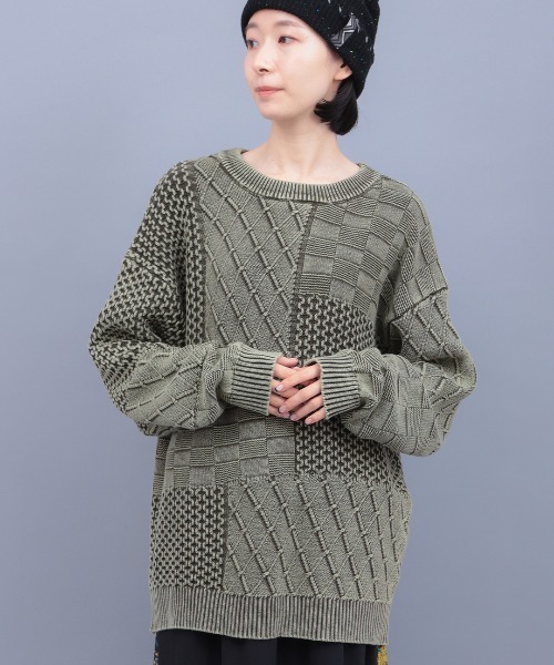 奥行きのあるカラーが魅力◎ヴィンテージ感漂うコットンニットプルオーバー ■デザイン ストーンウォッシュ加工を施し、ヴィンテージライクな風合いが魅力のクルーネックニット。 さまざまな編み柄を組み合わせたパッチワーク風デザインで、無地ながらも表情豊かな印象に仕上げました。 シンプルながら個性が光る、1枚で主役になるアイテムです。 ■サイズ感 フリーサイズ ユニセックスで着られる、ゆったりとしたシルエット。 リラックス感があり、インナーを重ねてもごわつかず快適に着用できます。 ■素材感 コットン100%の柔らかく肌なじみの良い素材。 ストーンウォッシュ加工によって、くたっとした質感とナチュラルな色落ちを楽しめます。 ■スタイリング デニムやカーゴパンツと合わせて、ラフなヴィンテージカジュアルに。 ロングスカートやカラーパンツと合わせて、抜け感のあるユニセックスコーデもおすすめです。 ■カラー ブラック/カーキ ■お手入れ手洗い/ドライクリーニング --------------------------------- 透け感:透けない 伸縮性:あり 裏地 :なし 光沢 :なし 生地の厚さ:普通 ポケット:なし --------------------------------- 【お取り扱いのご注意】 この製品は独特な色目(風合い)を出すため特殊な加工をしており、一点一点多少表情が違います。 風合いや色の出方、サイズ違いや寄れ、シワなどが生じる場合がありますが、これは加工の特徴であることをご理解ください。 取り扱いには下記の点にご注意ください。 ・着用や洗濯を繰り返すほどに、染料が色褪せし、風合いが増してきます。 ・着用時に、下着や他の衣類に色が移ることがあります。同系色の下着の着用をおすすめします。 ・ご家庭での手洗いの上、自然乾燥をおすすめします。 ・過度な摩擦などにご注意ください。 詳しくは付属のタグをご確認ください。 【TITICACAのお買いものをお楽しみいただくために!】 ▼商品のお気に入り登録 完売カラーの再入荷通知や、ラスト1点の通知、セールの通知も受け取ることができます。 ▼ブランドのお気に入り登録 新商品や再入荷など、いち早くブランドのお得な情報を受けることができます!