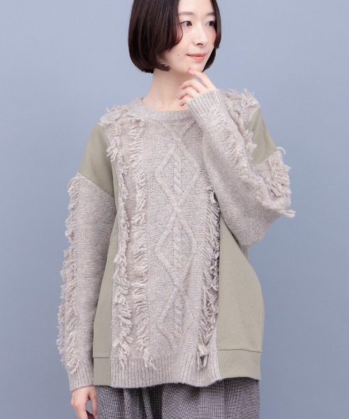 異素材ミックスで旬をまとう!フリンジが目を惹くリメイク風プルオーバー ■デザイン ニット×スウェットを組み合わせた、リメイク風デザインが魅力のプルオーバー。 ケーブル編みニットにあしらったフリンジが、ほどよいボリューム感をプラスして立体的な印象に。 ベージュ・チャコールグレーは異素材配色がアクセントに、オレンジは同色でまとめたビビッドな個性派カラーです。 ■サイズ感 レディースフリーサイズ ゆったりとしたシルエットで、リラックス感のある着心地。 インナーを重ねてももたつかず、1枚で主役になるバランスの良いサイズ感です。 ■素材感 フロントはニット、サイドや背面は裏毛スウェット素材を使用。 柔らかく伸縮性があり、異素材ながら軽やかで着心地の良い仕上がりです。 ■スタイリング デニムやカーゴパンツと合わせて、抜け感のあるカジュアルスタイルに。 柄スカートやワイドパンツを合わせれば、個性を引き立てるボヘミアンミックスコーデも◎ ■カラー ベージュ/チャコールグレー/オレンジ --------------------------------- 透け感:透けない 伸縮性:あり 裏地 :なし 光沢 :なし 生地の厚さ:普通 ポケット:なし --------------------------------- 【お取り扱い上のご注意】(ピリング(毛玉))この製品は、ピリング(着用中の摩擦などにより毛羽が絡み合い出来る、繊維表面の毛玉)ができやすい素材を使用しています。 連続での着用はお避け下さい。 ピリングができた場合は、引っ張って取ろうとせずハサミや毛玉取り器などで、ひとつひとつ取り除いて下さい。【TITICACAのお買いものをお楽しみいただくために!】 ▼商品のお気に入り登録 完売カラーの再入荷通知や、ラスト1点の通知、セールの通知も受け取ることができます。 ▼ブランドのお気に入り登録 新商品や再入荷など、いち早くブランドのお得な情報を受けることができます!