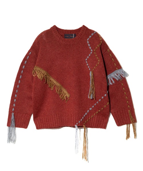 ☆CUBE SUGAR☆ アンティークニット ハンドステッチPOCUBE SUGAR/キューブシュガーから新作ニットが登場。■糸の遊び心にひとめ惚れ!ハンドステッチが映える個性派ニット立体感のあるフリンジとハンドステッチが目を引く、まるで「着るアート」のようなデザインニット。2色使いの装飾糸が、動くたびに表情豊かなで奥行きのある存在感を放ちます。袖口のステッチを絞ることでくしゅっとシャーリング風にアレンジもOK!シンプルなボトムに合わせるだけで、ぐっとこなれたスタイルに。この秋冬、周りと差をつけたい日に手に取りたい、自慢の一着です。■point・ハンドステッチ&フリンジで遊び心たっぷり・袖口は絞ってシルエットアレンジが可能・2カラーの糸で奥行きのある表情に・襟や袖口、裾はリブ仕様でメリハリをプラス・ゆったりとしたオーバーサイズでリラックス感も◎■fabric保温性の高いウール混のニット素材を使用。空気を含んでぬくもりをしっかりキープしてくれます。ご自宅で手洗いが可能なのでお手入れが簡単なのも嬉しいポイントです。■アンティークニットとは厳しい環境で育った英国羊からとれる"シェットランドウール"。空気をよく含み、暖かく耐久性のあるしっかりとした強い毛が特徴です。シェットランドウールとアクリルを配合し、独特のにおいと肌触りを優しく仕上げました。古着らしい風合いをイメージし"アンティークニット"と名付けています。≪ウール特有のにおいについて≫シェットランドウールの紡毛糸には油脂成分が含まれており、糸の段階から特殊な臭いをもった天然素材を使用しています。この成分によってシェットランドウール独特の風合いや素材のふくらみが保たれています。この臭いそのものがシェットランドウールの特徴でもありますが、あらかじめご了承いただきますようお願いいたします。≪洗い方≫洗濯液は30℃のぬるま湯で、中性洗剤を十分に溶かしてから洗ってください。洗濯ネットにいれ、弱水流の手洗いモードにて洗濯してください。多少の縮みが発生する可能性がございますが、予めご了承ください。詳しくは製品に付属される洗濯表示をご確認ください。※装飾糸部分は着用時や、洗濯・クリーニングにより糸の抜け・ほつれが生じることがありますので十分ご注意ください。※着用、お取り扱いの際は、商品についている品質表示とアテンションタグを必ずご確認下さい。【CUBE SUGAR/キューブシュガー】着ているだけでほっとする。肩肘はらずに等身大でいられる。だけどその時流(とき)の気分もきちんとあじわえる。そんな「CUBE SUGAR」のLife Styleを提案します。