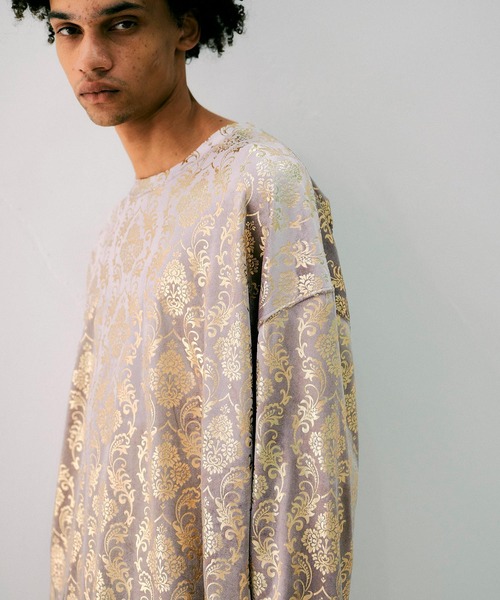 2025AW インパクトのあるダマスクパターンをゴールドでプリントした、ベロア素材のロングスリーブプルオーバー。 同じファブリックのダマスクパターンベロアパンツ(NMA3-UP15)も展開しており、セットアップスタイリングも可能です。 厚すぎず薄すぎないほどよい生地感で、ロングシーズンの着まわしていただけるアイテム。 1枚でも存在感がありますが、ジャケットやブルゾンのインナーとしてアクセントになる着こなしもおススメです。 ---------------------------------------- 透け感/なし 光沢感/あり 伸縮性/あり 裏 地/なし 厚 み/ふつう ---------------------------------------- ※商品の色味は、撮影場所や光のあたり具合などにより色味が違って見える場合が御座います 。また、お客様のお使いのPCのモニター環境などにより色味が違って見える場合が御座います。 *適正量生産で私たちにできることからサスティナブルに取り組んでいます* 昨今問題視されているアパレル業界の大量生産・大量廃棄の問題。わたしたちは、せっかく思いを込めて作ったわたしたちの洋服が無駄に廃棄されることがないように、適正量をできる限り国内で生産しています。"作りすぎない"ことで、完売となりお届けまでにお時間を頂戴する場合もございますがご了承いただけますと幸いです。 ブルゾンやコートはもちろん、セットアップのインナーにも合わせられます。 ワイドパンツと合わせてきれいめでモードなスタイル、スラックスに合わせてIラインシルエット、デニムやチノパンと合わせてストリート、どんなコーディネートにも合わせることが可能です。 スーツや革靴はもちろん、スニーカーを合わせてカジュアルなスタイルにも。 レザー素材のトートバッグやサコッシュ、キャップやバケットハットなど小物との相性はバツグンです。 NOISE MAKER(ノイズメーカー) 素材の良さはもちろん、パーツひとつひとつに丁寧な工程を施し、立体的で着心地の良い1着を作ることをモットーにしています。デザインのみならず、袖を通した瞬間の心地よさを大事にしているブランドです。 *お買い物をお楽しみいただくために* ▼商品のお気に入り登録 カートボタン付近の♡をクリックして商品をお気に入り登録をすると、完売カラーの再入荷通知や、ラスト1点の通知、セールの通知などを受け取ることができます。 ▼ブランドのお気に入り登録 「♡ブランド追加」または「♡このブランドをお気に入り登録」をクリックすると、新商品や再入荷等最新情報を受け取ることができます。