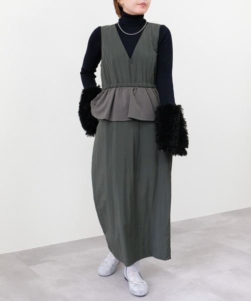 -25AW|DOLLUPOOPS-スタイルアップも快適さも、どちらも叶える。ペプラム切替が立体感を生み、軽やかな素材で動きやすさもプラス。【Material】異素材をドッキングしたミリタリーテイストの生地を使用。程よくハリ感があり、シルエットを美しくキープしながらも、軽やかな着心地を叶えます。【Design】ウエスト部分にペプラム切替を施し、女性らしい立体感を演出。ミリタリーのディテールをベースに、程よい甘さを加えたデザインに仕上げています。ポケットやステッチのアクセントが、こなれた雰囲気をプラス。【Size】身体のラインを拾いすぎない、ややゆとりのあるシルエット。ウエスト位置を高めに設定しており、スタイルアップ効果も期待できます。【Styling point】軽やかでハリのある素材感を活かし、秋冬はインナーで温度調整するのがおすすめ。タートルネックやリブニットをレイヤードしても着膨れしにくく、シルエットの立体感はそのままキープできます。足元はブーツで季節感を添え、アウターにはウールコートやミリタリーアウターを合わせると、素材コントラストが映える大人カジュアルなスタイリングに。___________________________★商品のお気に入り登録 完売カラーの再入荷通知や、ラスト1点の通知、セールの通知も受け取ることができます。是非ブランドの"お気に入り登録"もご一緒にお願い致します!!! ※画像の商品は光の反射や角度により、実物と色味が異なる場合がございます。 また、表示のサイズ感と実物は若干異なる場合もございますので、予めご了承ください。 ※着用、お取り扱いの際は、商品についている品質表示とアテンションタグを必ずご確認ください。-DOLLUPOOPS | ドールアップウップス-【Add a little essence】ライフスタイルの多様化が進む現代変わり続ける今をとらえ、自分らしい感性を大切にする女性に向けて" より美しく" 毎日を" 彩る" ワードローブを。日常に調和しつつ、" 普通 " に少しだけエッセンスをたして、他にない特別な一品を提案します。-Instagram-公式インスタグラム【dollupoops.tevalt_official】※商品のサイズ感やご質問は【dollupoops.tevalt_official】のインスタアカウントDMにて承っております。お気軽にご相談くださいませ。