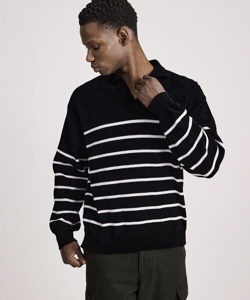 【Design】モール糸を総針で編み立てた、トレンドのスキッパーポロデザインです。リラックスしたシルエットとボーダーが、バスクシャツを思わせるようなデザインになっています。【Point】コットンモールを使用したスキッパーデザインのセーターです。【Material】光沢感を抑えたコットンモールを目の詰まった総針で編み立てたふっくらとしたタッチが特徴の素材です。【Composition】組成:コットン 100%【Country of origin】原産国:MADE IN CHINA【Size Specs】S/ 着丈 66 | 肩幅 50 | バスト 110 | 袖丈57M/ 着丈 68 | 肩幅 51 | バスト 114 | 袖丈 58L/ 着丈 70 | 肩幅 52 | バスト 118 | 袖丈 59XL/ 着丈 72 | 肩幅 53 | バスト 122 | 袖丈 60【モデル情報】ブラック:身長184cm 着用サイズ L sizeブリック:身長186cm 着用サイズ L size※画像の商品はサンプルとなります。 ※実際の商品と色味、仕様、加工、サイズ、素材等が若干異なる場合がございます。Item Code:BBM75090