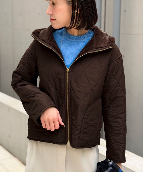◇25AW◇ MICO COULIER 1枚で2通りの表情。 上品に着映えるリバーシブルキルトアウター ◆Point ・軽くて暖かい中綿入りのリバーシブル フードジャケット ・表面は上品な光沢のあるフェイクファー、 裏面はしなやかなキルティング ・ファーアウターとして、中綿アウターとして 気分やコーデに合わせて違う表情が楽しめます ・コンパクトな丈感でボトムを選ばず、 スカートにもパンツにも好相性 ・ボリュームをおさえたシルエットで着膨れせず すっきり見え ・上品できれいめな印象のゴールドジップ ・1枚で2着分、冬の着こなしがぐっと今っぽくなる オンオフ問わず活躍するアウター ・短めの着丈ですっきり着られ、小柄さんにもおすすめ◎ ---------------------------------------------------------- 透け感:なし 裏地:なし 伸縮性:なし 光沢感:ファー部分のみ若干あり 洗濯:ドライクリーニング(家庭洗濯不可) ---------------------------------------------------------- 気になる商品は、お気に入り登録がオススメです! クーポン情報、入荷情報が通知されるようになります ---------------------------------------------------------- ●お取扱い上のご注意● 末永くご愛用頂くために、アテンションタグを必ずご確認の上、着用又はお取り扱い下さい。 ※店頭及び屋外での撮影画像は、光の当たり具合で色味が違って見える場合があります。商品の色味は、スタジオ撮影の画像をご参照下さい。 ※商品画像に関しては出来る限り忠実に表示出来るよう努めておりますが、お客様がご利用のモニターの設定及び特性により、実際の商品と比較し色味に若干の誤差が生じる場合があります。 ※製品洗い加工の商品は、多少の歪み、シワなどが見られたり、風合いやサイズ等が1枚1枚異なります。汗や雨等で濡れた時や、摩擦により色落ちし、他の衣料を汚すことがありますので(特に濃色のもの)ご注意ください。