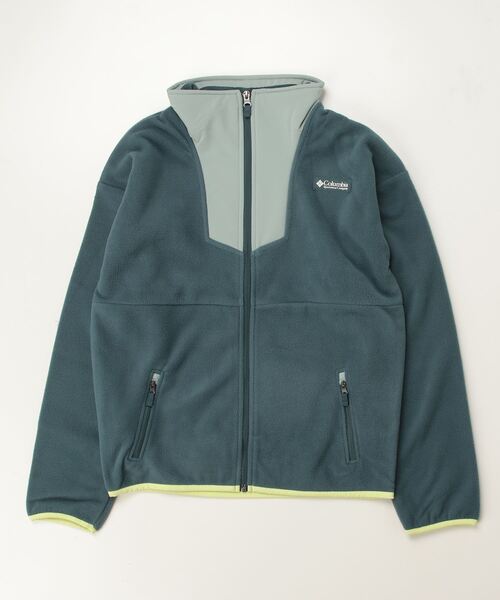 ■リサイクルフリース素材を使用■ジッパー付きハンドポケット■ネック、前立て部分はウーブン生地をオーバーレイ■アウトドアムードを高める大胆な配色切替