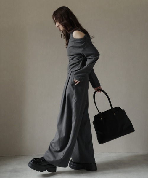 重ねて完成、こなれ感のある3点セット。 ■デザイン ワンショルダーカットソー、ハイネックレースインナー、タック入りワイドパンツの3点セット。 単品でも着回せるアイテムながら、セットで着ると完成度の高いスタイリングに。 ワンショルダーの抜け感とレースインナーの繊細さが絶妙なレイヤードを演出。 パンツはタック入りのワイドシルエットで、モード感と美脚効果を両立。 ■素材 さらっと軽やかな着心地。 それぞれの素材感が引き立て合い、着心地とデザイン性を両立したセットです。 ■スタイリング セットで着るだけで、レイヤードの洒落感が完成。 カットソーはデニムやスカートと合わせて単品使いも◎。 レースインナーはワンピースやニットのインナーとしても活躍。 パンツはTシャツやブラウスと合わせて、きれいめにもカジュアルにも着回し可能。 ------------------------------ 【スタッフが着用しました!】 身長:158cm 普段着用サイズ:S~Mサイズ 今回着用サイズ:Sサイズ ■着用感 それぞれ程よくゆとりのある設計で、動きやすく快適な着心地。 ワンショルダーはフィットしすぎず、レースインナーで肌見せも安心。 パンツはウエストまわりすっきり、脚まわりはゆったりとした美シルエット。 ------------------------------------------------ 【お買い物をよりお楽しみいただく為に】 ▼お気に入り登録 サイズ・カラーを指定して、♡マークをクリック![セール通知・ラスト1点の通知・完売アイテムの再入荷通知]を受け取ることができます。 ▼ブランドのお気に入り登録 新商品や再入荷、タイムセールやクーポン等いち早くブランドのお得な情報を受け取ることができます。 ------------------------------------------------ ※取り扱い上のご注意 染色の特性上、発汗や摩擦により色落ちしたり他のものに色移りすることがありますのでご注意ください。 韓国 オフィスカジュアル ガーリー 大人カジュアル 韓国ファッション 秋服 冬服 セットアップ