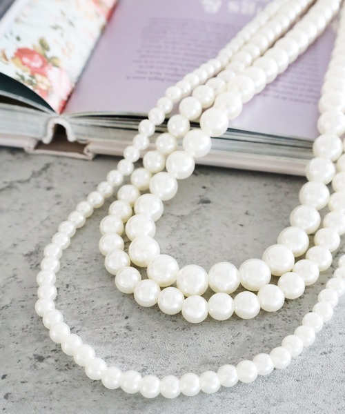 長さや大きさが異なる、パールのネックレス3点セット。 単体でもセットでもお使いいただけ、何通りにもアレンジができるアイテムです。