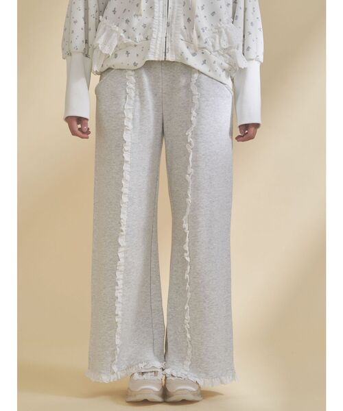 ■デザイン スウェット素材に、さりげない甘さを散りばめたデコラティブパンツ。 センターラインやポケットまわりに挟み込んだレースのフリルテープ、ヒップポケット上に重ねたピンドットチュールなど、 ディテールのひとつひとつに遊び心を込めました。 ■サイズ感 ウエストはゴム+ドロスト仕様で、リラックス感のある履き心地。 メンズライクアイテムながら すっきりとしたシルエットで、カジュアルながらも上品な印象に。 ■スタイリング デコラティブなトップスを合わせて、とっておきの日のスウェットスタイルを楽しんで。 【商品情報】 透け感:なし 裏地:なし 伸縮性:あり 光沢感:なし 生地の厚さ:普通 【商品のお気に入り登録】 ♡をクリック! 完売カラーの再入荷や、ラスト1点の通知、 セールの際の通知も受け取ることができます。 【ブランドのお気に入り登録】 新商品や再入荷など、 merryの情報をいち早くお知らせします! ぜひご登録ください♡