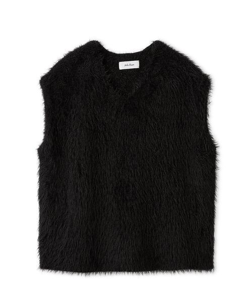 【レイヤードも万能の愛されアイテム、大人気のシャギーベストが、リクエストに応えて再登場】【Design/Styling】昨年度大人気だった、シャギーベストが今年も登場。まるでファーのような、豊かな毛足を楽しめます。デコルテを引き立てるVネックと、ゆったりとしたシルエットがフェミニンな印象。短めの着丈で、どんなボトムにも合わせやすいのが、今年らしいポイントです。中にシャツやニットを重ねた、レイヤードスタイルもおすすめです。BLKカラーのみ、さりげないラメ混の糸で展開しています。【Fabric】ふわふわのシャギーニットは、美しい毛並みで極上の肌ざわり。軽くて伸縮性に富んでいるのも着やすいポイントです。BLK以外は、マットな糸で編んでいます。カラーは3色をご用意。癒やし系カラーの<IVR>、ラメ入りでしなやかな<BLK>、今年らしいトレンド色<MST>、モードな<GRY>で展開しています。※照明の関係により、実際よりも色味が違って見える場合があります。またパソコン・スマートフォンなどの環境により、若干製品と画像のカラーが異なる場合もございます。予めご了承ください。商品の色味は、商品単品画像をご参照下さい。 ※商品画像はサンプルのため、色味やサイズ等の仕様に変更がある場合がございますので、予めご了承ください。