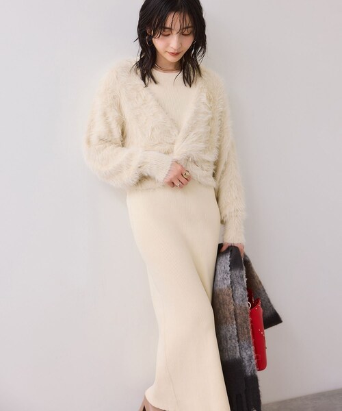 【2025 Autumn/Winter】【25AW】 <POINT> ・プルオーバーは毛足の長いシャギーを使用し今年らしい印象のねじりディテールをアクセントにしています。 ・すっきりとしたワンピースのシルエットにこだわり、ボディラインを拾いにくいもちっとした糸を使用。 ・セットアイテムのため、プルオーバーとワンピース別々でも着用できるのも嬉しいポイント。 【デザイン・シルエット】 ねじりデザインのプルオーバーとタンクワンピースをセットで着用するレイヤードワンピース。 レイヤードして着ると、ちらっと肩のラインが見えるようにデコルテラインの開きにこだわりました。レイヤードするとスタイルアップして見えるようなバランス感のワンピースです。 トップスとワンピースは別々で使うことも可能です◎。 【素材】 身頃は肌あたりにこだわった柔らかいフェザーの素材。ワンピースはもちっと弾力感のある綺麗め見えする糸を使用。 毛羽立ちや毛玉になりにくいアンチピリング素材。 【カラー】 チャコール、キナリ、ベージュの3色展開。 【おすすめのスタイリング】 セットで重ねて使って女性らしく着用していただくのがおすすめです。 トップスとワンピースは別々でも着られるので、お手持ちのアイテムと合わせてスタイリングして頂くのもおすすめです。 ----------------------------- 裏地:なし 光沢感:なし 透け感:ややあり 伸縮性:あり ポケット:なし ボタン:なし 生地の厚さ:やや厚手 その他仕様:トップスは取り外し可能 季節:秋、冬 ----------------------------- 【モデル着用サイズ】 27(ベージュ)メイン着用モデル身長:164cm 着用サイズ:F 06(チャコール)16(キナリ)メイン着用モデル身長:161cm 着用サイズ:F ※画像の商品はサンプルです。実際の商品と仕様、加工、サイズが若干異なる場合がございます。 ※画像によっては実際の色味と異なる場合があります。正しい色味は生地アップ画像をご確認ください。