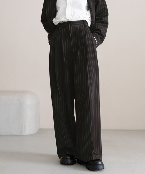 大好評スラックスの新作が登場◎ ■おすすめの着こなし ☆定番!カジュアルスタイルには・・・ ロンTをインナーに着込み、スウェットやパーカーと合わせるカジュアルな着こなしが◎ キャップやスニーカーで、メンズライク風にするのも良し、、 あえてローファーやミュールなどを合わせた大人見えスタイルにするのも良しです。 ☆きれいめスタイルには・・・ 落ち着いた雰囲気のニットやブラウスと合わせることで、クリーンな印象に。 ジャケットを羽織り、小物でアクセントを効かせれば洗練された女性らしさも◎ タックインして着用すれば、スタイルアップ効果も抜群です。 ■ポイント 大人気だったスラックスが新しいシルエットになって登場。 ストンとまっすぐな落ち感が美しく、センタープレスに繋がる3タックデザインなので、ルーズなサイジングでも美脚効果抜群なアイテム。 身体のラインを拾わないワイドパンツなので、穿くだけ体型カバーできるのも嬉しいポイントです。 幅広いアイテムと相性の良いベーシックなデザインなので、カジュアルからきれいめまで様々な着こなしをお楽しみいただけます。 シンプルなデザインになったので、誰でも穿きやすい一本に仕上がりました。 ■素材 上品な素材感で、オンオフ問わず穿いていただけます。 シワになりづらく、耐久性に優れているのでロングシーズンお使いいただけること間違いなしです◎