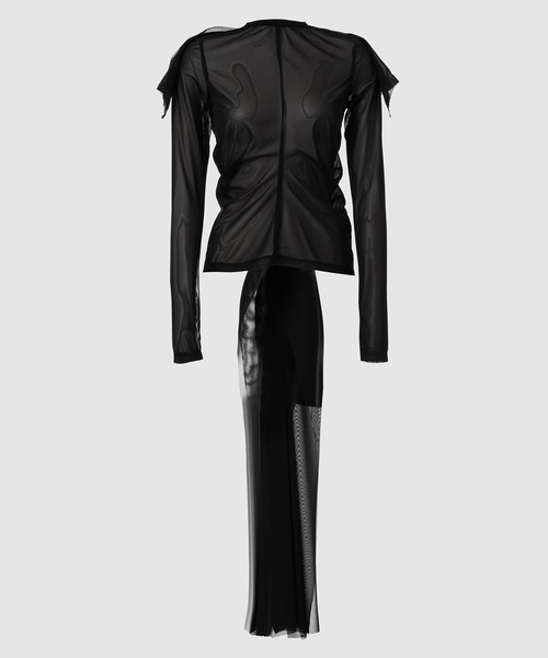 YOHEI OHNO(ヨウヘイオオノ)東京を拠点にウィメンズウェアを主に展開するブランド。アートや建築、日用品など衣服の形をしていないものからインスピレーションを得て、アーティスティックで構築的なシルエット、ユーモアあふれるディテールへのアプローチに定評があり、服飾の伝統にとらわれない独自の方法で作品を作り続けている。デザイナーの大野陽平は、文化服装学園でパターンカッティング・ソーイングの基礎を習得し、その後イギリスに留学。日本に帰国後、2014年末に自身のレーベル「YOHEI OHNO」を立ち上げ、2015年秋コレクションでデビュー。・魚の尾びれのような背中や外側に跳ねた肩布の造形が特徴の、チュール素材のトップス・ドレスを着る機会はあまりないが、ドレッシーな服をパンツと合わせて街中で着るのは良しとする東京の女性たちからインスピレーションを得て制作した<information>・商品のお気に入り登録お気に入りアイテムの再入荷・在庫1点や、マークダウンなど、特別な情報を受け取ることができます。・ブランドのお気に入り登録新入荷(新着)や再入荷(再販)、メルマガなどの各種最新情報を受け取ることができます。