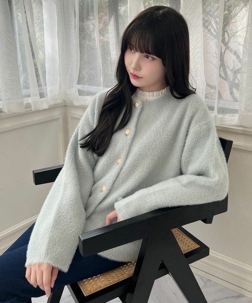 ■デザインポイント ふわふわとした柔らかなシャギー素材が、シーズンムードを演出してくれるニットカーディガン。 裾が程よく丸くなったコクーンシルエットが幅広いテイストのアイテムに合わせやすいポイント◎ フロントのゴールド釦で上品さをプラスしました。 ■オススメスタイリング フレアースカートやワンピースと合わせたフェミニンな着こなしがオススメ。 季節の変わり目にはライトアウターとしても活躍してくれるため、1枚GETしておくと便利なアイテムです。 ====== 透け感:なし 生地感:起毛感あり ====== ▼Fint/フィント 50~70年代のクラシカルなヴィンテージデザインにトレンド感をプラスしたレトロ&ガーリースタイルをお届け。 古着屋で一点ものを見つけるような【ときめき】を感じられるブランドです。 70s~90sストリートからイメージしたアイテムにレトロ&ガーリー要素をMIXした トレンド感あるカジュアルアイテムが揃う「Pink Label」のアイテムも展開中! ▼商品のお気に入り登録▼気になるアイテムの♡をクリックしてお気に入り登録すると残り1点の通知、完売カラーアイテム再入荷の通知、お得な通知が届きます。 ▼ショップお気に入り登録▼ ショップからの新作商品やお得なイベント情報など、いち早くブランドからの情報を受け取ることができます。