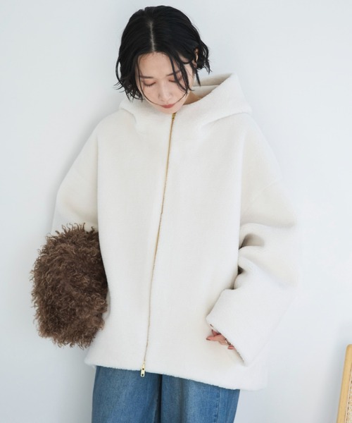 コロンとしたシルエットともこもこ感がたまらない1枚 【point】 ・こまかめのボアが可愛くなりすぎずオトナが着やすいデザイン ・肩を落としたゆる感のあるオーバーサイズなシルエット ・開けて着ると抜け感を出せるので重たくなりにくい ・袖もゆとりがあるので中に厚手のニットも着やすいです ・裏地付きで保温性も◎ 【fabric】 ・ふわふわと滑らかなボア素材 透け感:なし 裏地:あり 伸縮性:なし 光沢感:なし 生地の厚さ:厚手 【注意事項】 ・画像の商品はサンプルです。 実際の商品と仕様、加工が若干異なる場合があります。 ・サイズ表記はあくまで目安となります。 ・取り扱いについては、商品についている品質表示でご確認ください。 ・照明の関係により、実際より明るく見える場合がございます。またパソコンなどの環境により、製品と画像のカラーが若干異なる場合がございますので、予めご了承くださいませ。 ■お気に入り登録がオススメです!■ 《商品のお気に入り登録》 カラー・サイズ選択の横の「♡」をクリックで簡単に登録できます 完売カラーの再入荷や在庫が1点になったとき、セールになったときに通知をお届けします 《ブランドのお気に入り登録》 ページ上部のブランド名の「♡ お気に入りブランドに追加」をクリックで簡単に登録できます 新商品の情報やイベントなどお得な情報をいち早くお届けします 是非、ご登録お願いします♪