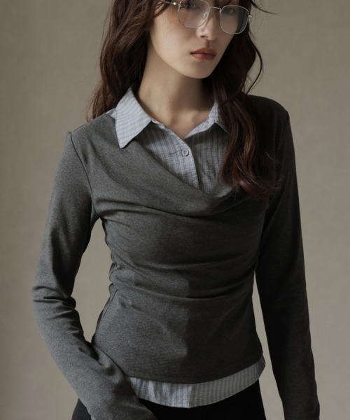 1枚でレイヤード、時短で洒落見え。■デザイン襟や裾からシャツがのぞくレイヤード風デザインが魅力の一枚。ややフィット感のあるシルエットで、すっきりとした着こなしが叶います。襟と裾のシャツディテールが、きちんと感とカジュアルさを絶妙にミックス。重ね着しているような奥行きのあるスタイルが、1枚で完成する時短アイテムです。■素材さらっとした肌触りと軽やかな着心地。通気性・速乾性に優れ、季節を問わず快適に着用可能。■スタイリングパンツと合わせてきれいめカジュアルに、スカートと合わせてフェミニンにも◎。ジャケットやカーディガンのインナーとしても、襟と裾がアクセントに。アクセサリーやバッグで遊びを加えれば、さらに着こなしの幅が広がります------------------------------------------------【お買い物をよりお楽しみいただく為に】▼お気に入り登録サイズ・カラーを指定して、♡マークをクリック![セール通知・ラスト1点の通知・完売アイテムの再入荷通知]を受け取ることができます。▼ブランドのお気に入り登録新商品や再入荷、タイムセールやクーポン等いち早くブランドのお得な情報を受け取ることができます。------------------------------------------------※取り扱い上のご注意染色の特性上、発汗や摩擦により色落ちしたり他のものに色移りすることがありますのでご注意ください。韓国 オフィスカジュアルガーリー大人カジュアル韓国ファッション秋服冬服