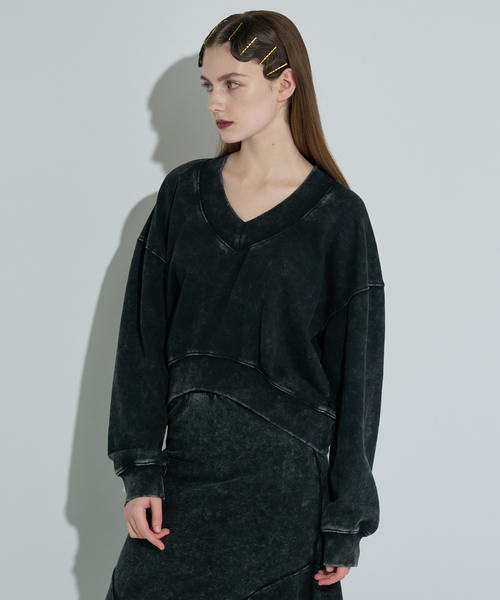 ※メーカー型番:15213297加工によるヴィンテージライクな色落ち感と風合いが魅力のプルオーバー。ラフな抜け感を生むワイドなVネック、前後差をつけた裾のカッティングがアクセントとなり、カジュアルなデザインの中にも深みをプラスしてくれます。同素材の“ピグメントコントラストスカート”と合わせればモード感たっぷりな大人の個性派カジュアルに。ブーツやアクセサリーと合わせることで、クールにもフェミニンにもスタイリング可能な単品使いでも着回し力抜群のアイテムです。【ANNA SUI NYC / アナスイエヌワイシー】ANNA SUI NYCは、ANNA SUIから誕生した"STREET&Y2K"を発信するサブライン。コンセプトは“CITY PLAY GROUND。※取り扱いについては、商品についている品質表示にてご確認下さい。※照明の関係により、実際よりも色味が違って見える場合があります。またパソコン・スマートフォンなどの環境により、若干製品と画像のカラーが異なる場合もございます。※商品の色味は、商品アップ画像をご参照ください。モデルサイズ:身長:163cm 着用サイズ:フリー本体:手洗い可能