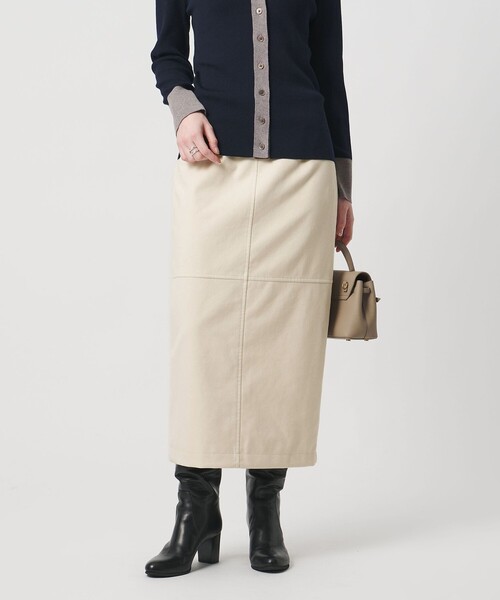 オフィスにも、旬のスタイルにも■デザイン全体的に体のラインにフィットする女性らしいタイトシルエットが特徴。本革風の切替ラインがアクセントになっています。金属ファスナーを見せない仕様で、すっきり上品な印象。■素材ポリエステルのマイクロファイバー糸を使用した滑らかで風合いがソフトな人工皮革素材。極細糸なので発色性に優れ、くすみのない美しい色ととても滑らかで心地よい肌さわりが特徴です。■コーディネート合繊ブラウスとの組み合わせでオフィススタイルにも活躍。ボリューム感のあるトップスと合わせれば、トレンド感のある装いになりおすすめ。============================裏地:あり透け感:なし伸縮:なし光沢感:なしケア方法:手洗い可============================【注意事項】※商品に「取り扱い上の注意書き」、「洗濯表示」がございます場合は、使用前に必ずご確認ください。※商品画像は、光の当たり具合やパソコンなどの閲覧環境により、実際の色味と異なって見える場合がございます。あらかじめご了承ください。※商品の色味の目安は、商品単体の画像をご参照ください。店舗へお問い合わせの際は、全国のUNITED ARROWS各店舗まで下記の品名/品番をお申し付けください。品名:〇UBC FAKE SED TT 81 品番:15241620006