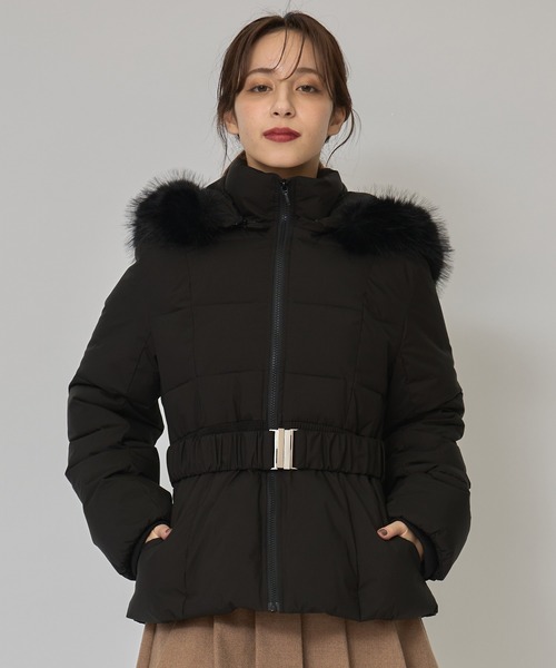 スタイルアップも叶う、冬の最愛キルティングアウター女性らしいペプラムシルエットが魅力のREDYAZELオリジナルファイバーダウンジャケット。ウエストマークできるベルト付きで、スタイルアップ効果も抜群。リアルに近い質感のフェイクファーフードは取り外し可能で、シーンに合わせて表情を変えられます。ふんわりと軽いファイバーダウン素材で、暖かさと上品さを両立。タウンユースからデートシーンまで幅広く活躍する、冬の主役アウターです。〈ファイバーダウンの特徴〉ファイバーダウンとは、羽毛のように軽く柔らかな風合いを再現した合成繊維の中綿素材。保温性に優れながらも湿気に強く、型崩れしにくいのが特徴です。ボリューム感がありながら軽やかな着心地で、寒い季節に快適に過ごせます。 さらに耐久性に優れており、繰り返しの着用やクリーニングでも型崩れしにくく、イージーケア性も魅力。動物由来素材を使用せず、環境に配慮した次世代のダウン代替素材として注目されています。〈取扱方法〉・ご家庭でのお洗濯は避け、ドライクリーニングをおすすめします。・着用後は風通しの良い場所で陰干しし、湿気を残さないようにしてください。・アイロンはお避けください。シワが気になる場合はスチームを軽くあてて整えてください。・保管時は圧縮せず、ハンガーに掛けて通気性の良いカバーをかけることで、型崩れや潰れを防げます。・雨や雪で濡れた際は、すぐに水分を拭き取り、完全に乾かしてから収納してください。透け感:なし裏地:あり伸縮性:なし生地の厚さ:厚手M:M(02):着丈63.5cm 身幅52.5cm 肩幅44cm 袖丈61cm ウエスト91cmS:S(01):着丈62cm 身幅51cm 肩幅43cm 袖丈60cm ウエスト88cm