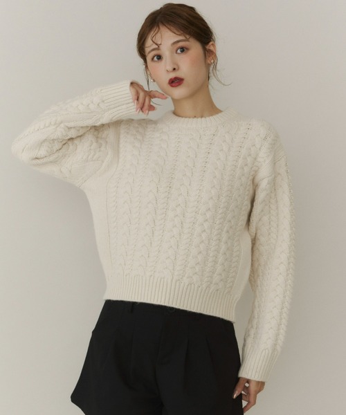 立体感とあたたかさを兼ね備えた、愛されケーブルニット 立体感のあるケーブル編みが 冬らしい表情を添えるクルーネックニット。 シンプルながら存在感があり、 着るだけで季節感のあるスタイルに仕上がります。 しっかりとした肉厚素材で仕立て、 ふっくらとしたあたたかさを感じられる一枚。 柔らかく包み込むような着心地で、 寒い日のおしゃれを快適にしてくれます。 アイボリーやグレーなどの定番カラーから、 イエローやレッドなどの華やかな色まで揃う6色展開。 その日の気分やシーンに合わせて、 あなたらしい一枚をお選びいただけます。