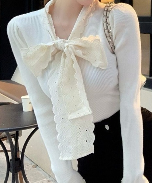 ◆DETAIL◇フロントにあしらったレースとリボンがポイントのリブニットロンT。程よくフィットするリブ素材がボディラインをきれいに見せ、女性らしさを引き立ててくれます。レース切り替えで顔まわりが華やかに見えるので、1枚で着ても存在感のあるアイテムです。◆COORDINATE◇① ガーリー…フレアスカートと合わせて、王道ガーリースタイルに。ブーツを合わせると季節感アップ。② きれいめ…タックパンツと合わせて上品にまとめれば、デートにもオフィスにも使える大人可愛いコーデに。③ カジュアル…デニムパンツと合わせて、甘さを程よくカジュアルダウン。ゆるめのカーディガンを羽織って抜け感をプラス。【色展開】・ホワイト・ブラック◆着用レビュー◇【スタッフA:身長155cm 骨格ウェーブ M着用】レースとリボンが顔まわりを明るく見せてくれます。生地に伸縮性があるので着心地も◎。【スタッフB:身長162cm 骨格ナチュラル L着用】ほどよくフィットしても窮屈感なし。スカートにもパンツにも合わせやすく、インしてももたつかないです。◆POINT◇・レース×リボンの上品ガーリーデザイン・伸縮性のあるリブ素材で着心地快適・1枚でも華やかに決まる・フェミニンにもカジュアルにも合わせやすい・シーズンレスで使える万能トップス◆キーワード◇・ガーリー・きれいめ・大人カジュアル・リブニット・リブロンT・レースリボン・フェミニン・フェミカジ・レーストップス・大人可愛い・華やか見え※生産の特性上、商品画像との色差が多少出る場合がありますのでご了承ください※着用身長によって画像イメージと異なる場合があります。 ※撮影環境により、実際のカラー、形状、デザイン等多少異なる場合がございます。 《 お知らせ 》 ▼商品のお気に入り登録 お気に入りアイテムの値下げ・再入荷・在庫1点などの通知を受け取ることができます。 ▼ブランドのお気に入り登録 新商品や再入荷、セール、クーポン配布などお得な情報を受け取ることができます。是非、お気に入り登録してみてください!※他のキャンペーンにより、期間中に価格が変動する場合があります。※セールは予告なく終了させていただく場合もあります。※ご注文いただいた予約商品のお届け時期の確認は、注文履歴ページより行えます。