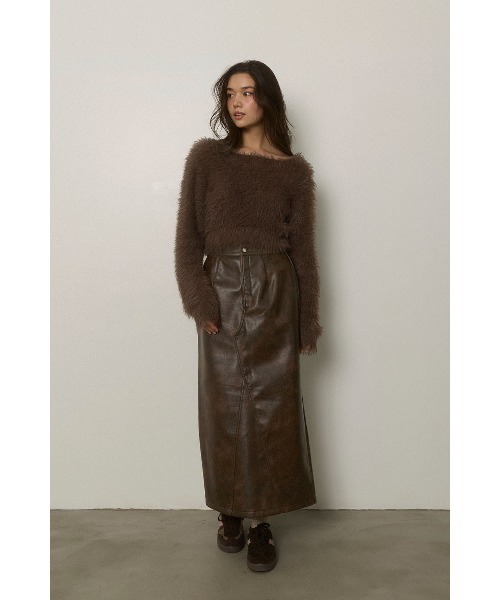 上品な艶をまとったフェイクレザー素材が魅力のスカート。ストレートシルエットがすっきりとした印象を与え、大人らしいスタイルを演出。ニットと合わせて落ち着いた着こなしにしたり、スウェットでカジュアルダウンするのもおすすめです。※モデル着用画像はイメージのため、実際の商品のお色と異なって見える場合がございます。商品の詳細画像が実際の商品により近いお色となります。※製品タグに注意事項の記載がございますので、お読みいただき、正しくお取り扱いください。※サイズは平置き寸法です。