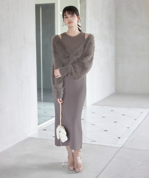 チラッと女性らしい肌見せが楽しめる女性らしさの詰まったセットワンピース。【2025 Autumn/Winter】【25AW】<POINT>・プルオーバーは毛足の長いシャギーを使用し今年らしい印象のねじりディテールをアクセントにしています。・すっきりとしたワンピースのシルエットにこだわり、ボディラインを拾いにくいもちっとした糸を使用。・セットアイテムのため、プルオーバーとワンピース別々でも着用できるのも嬉しいポイント。【デザイン・シルエット】ねじりデザインのプルオーバーとタンクワンピースをセットで着用するレイヤードワンピース。レイヤードして着ると、ちらっと肩のラインが見えるようにデコルテラインの開きにこだわりました。レイヤードするとスタイルアップして見えるようなバランス感のワンピースです。トップスとワンピースは別々で使うことも可能です◎。【素材】身頃は肌あたりにこだわった柔らかいフェザーの素材。ワンピースはもちっと弾力感のある綺麗め見えする糸を使用。毛羽立ちや毛玉になりにくいアンチピリング素材。【カラー】チャコール、キナリ、ベージュの3色展開。【おすすめのスタイリング】セットで重ねて使って女性らしく着用していただくのがおすすめです。トップスとワンピースは別々でも着られるので、お手持ちのアイテムと合わせてスタイリングして頂くのもおすすめです。-----------------------------裏地:なし光沢感:なし透け感:ややあり伸縮性:ありポケット:なしボタン:なし生地の厚さ:やや厚手その他仕様:トップスは取り外し可能季節:秋、冬-----------------------------【モデル着用サイズ】27(ベージュ)メイン着用モデル身長:164cm 着用サイズ:F06(チャコール)16(キナリ)メイン着用モデル身長:161cm 着用サイズ:F※画像の商品はサンプルです。実際の商品と仕様、加工、サイズが若干異なる場合がございます。※画像によっては実際の色味と異なる場合があります。正しい色味は生地アップ画像をご確認ください。