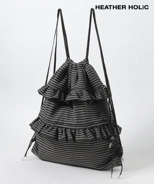 韓国カジュアルが好きな女性に向けたWEB限定ライン【 HEATHER HOLiC / ヘザー ホリック 】ベースは韓国のカジュアルトレンドからインスパイアを受けています。今回はフリルやドットなどトレンド要素を取り入れつつ、カジュアルなテイストに落とし込みました。カラーをあえてモノトーンで揃え、大人っぽい雰囲気のアイテムがラインナップ。ヘザーが常に新しい自分を探求し、最先端・流行を取り入れたい女性像を表現しているのに対し、ホリックでは背伸びしすぎず、今の自分の気分のままに日々コーディネートを楽しむ女性をイメージして企画しています。ーーー【デザイン】カジュアルなナップザックにフリルを掛け合わせたデザインがポイント。柄はトレンドのドットとボーダーのアソート展開。スタイリングのアクセントにおすすめです。ーーー※屋外の光や照明の当たり具合で、実際の商品と画像の色味に違いが発生する場合がございます。※サンプルにて撮影をしておりますので、実際の商品とは仕様や加工・サイズ等が若干異なる場合がございます。---------------------------------------------------------▼気になるアイテムはお気に入り登録がおすすめ!▼気になる商品は♡をクリックしていただくと、・在庫残りわずか・再入荷・セールの情報などの通知を受け取ることができます。▼ブランドのお気に入り登録も!▼新商品や再入荷、セール、クーポンの配布など、いち早くお得な情報を受け取ることができます。ぜひご登録ください♪