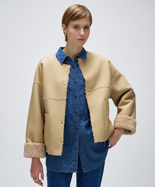 【デザイン】 ・昨年大好評だったリバーシブルボアブルゾンが、今年もアップデートして登場。 ・ボア素材と合成皮革の両面を楽しめる2WAYリバーシブル仕様。 ・ミディ丈に肩の落ちたデザインで、抜け感のあるリラクシーなシルエット。 ・アームはややゆったりと仕上げつつ、身頃をすっきりまとめることで横に広がらず、大きく見えすぎないバランスに。 【素材】 ・ふっくらとしたボア素材が暖かく、寒い季節に最適。 【着こなしポイント】 ・フェミニンからカジュアルまで、テイストを問わず幅広くマッチ。 ・さっと羽織るだけでコーディネートが決まる、主役級の一着です。 ーーーーーーーーーーーーーーーーーー 気になるアイテムはお気に入り登録がおすすめ! お気に入り登録で、再入荷通知やお値下げ情報をお知らせ。 お得な情報をいち早くお届けいたします! アイテムページにある、ハートマークをクリックして追加できます。 ーーーーーーーーーーーーーーーーーー ※照明の関係により、実際よりも色味が違って見える場合があります。また、パソコン・スマートフォンなどの環境により、若干製品と画像のカラーが異なる場合もございます。 店舗へのお問い合わせ商品番号:R91-44007 ●製品寸法: 01(S):着丈55cm B117cm 袖丈49cm 肩幅59cm 02(M):着丈56cm B120cm 袖丈50cm 肩幅60cm 備考: