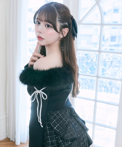 Belle Charme produced by YUIInstagram公式アカウント→@belle_charme_official■デザイン・ふわふわのファーと袖のリボンで、どこから見ても映えるオフショルニット。・毛の抜けにくいファーをたっぷり使用し、肩まわりを華奢に見せるボリューム感にこだわりました。・しっかり厚みのあるもちもちしたニットで、冬まで暖かく着れます。・ベルスリーブで腕のラインがきれいに見えて、細見えも叶います。■カラー・オフ/レッド/ブラックの3色展開■スタイリング・バックリボンツイードスカート(商品番号:1052180280)と合わせて着るのがおすすめ。・デニム合わせでカジュアルダウンさせてもかわいいです。-----------------------------裏地:なし光沢感:なし透け感:なし伸縮性:あり手洗い:可能タンブラー乾燥:不可アイロン:110℃まで-----------------------------model:165cm※着用、お取り扱いの際は、商品についている品質表示とアテンションタグを必ずご確認下さい。※ご覧のモニター環境や撮影環境により実際の商品と多少色味が異なって見える場合がございます。ご理解の程よろしくお願いいたします。※引っかけ注意・粗い組織のものや、表面に凹凸があってルーズな組織のもの表面に糸が浮き出ているものは、ちょっとした不注意から引っかけてしまいがちです。取り扱いの際は取り扱い絵表示確認の上、十分注意してください。・着用時にベルトや、バックや周囲の壁など表面の粗いものとの摩擦や引っかかりに注意してください。・水洗いやクリーニングの際にも他の物ものとの引っかかりに注意して下さい。■お気に入り登録のおすすめ【気になるアイテムを登録】ハートをクリックしてお気に入りに登録すると完売カラーの再入荷やラスト1点の通知、セールの通知を受けとることができます。【ブランドを登録】新商品や再入荷、セール通知など、いち早くブランドの情報を受けとることができます。